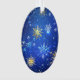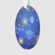 Ornamento Fundo Azul XMAS com Flocos de Neve Ouro