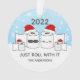 A funny and festive holiday ornament design featuring 2 adult and 2 child toilet paper rolls wearing Santa hats saying "Just Roll With It." A light-hearted laugh at the toilet paper shortage during COVID quarantine and events. Personalize the text and add your names to the ornament.