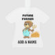 Um adorável fazendeiro de ursos marrons com seu peitoril fica ao lado de uma pilha de feno em nossas futuras camisetas, bíblias, panos de arroto, cobertores, pacificadores, pratos e muito mais!