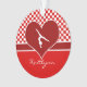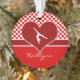 Enfeites de natal Checkered da ginástica com um design vermelho e branco. Um coração vermelho grande tem uma silhueta do gymnast para dentro! Use os campos feitos sob encomenda do texto para adicionar seu nome e o ano. Use "personalizam-no" o botão para mais opções (que incluem pias batismais diferentes!)