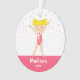 Garota de ginástica bonita personalizou Enfeites de natal. Apresentando uma ilustração de ginasta loira vestindo uma roupa rosa. === ANTES de fazer o seu pedido, entre em contato com o designer para obter ALTERAÇÕES GRATUITAS DE COR (cor uniforme, cor de cabelo, cor da pele e cor de fundo). === GRÁFICOS por Ilustrações JW © JESSICAWEIBLE.COM
