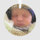 Crie seu próprio ornamento de fotos circulares "Meu Primeiro Natal como Vovó". Brilhante dourado puro e ouro de arte digital ombre. Adicione sua própria foto da família. Você pode personalizar o estilo de texto, a fonte ou as cores.