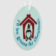 Elementos do trabalho de arte gráfico de feriado representando um gnomo que fica na porta de uma casa pequena de um lado e um floco de neve do outro lado desse Enfeites de natal acrílico redondo cada um podem ter uma cor diferente aplicada por meio da personalização para um aspecto único.
