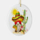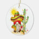 Divertido Enfeites de natal mexicano com um gnomo em um sombrero segurando molho quente e um taco em frente a um Cactus de Natal e ao Sol Sudoeste.