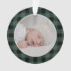 Photo ornament design for the holidays features a favorite image of your child with a farmhouse style in green and black buffalo check plaid patterned background. Add your baby's name and year using the template. Perfect as keepsake for newly grandparents or parents
