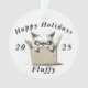 Um gato gritante com os divertidos e sarcásticos "feriados felizes" com este ano, o nome e as costas "sempre grumpy". Uma ilustração de aquarela linda deste gato zangado escondido em uma caixa vazia.
