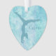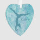 Uma ginasta de aqua da silhueta faz uma banca de um lado deste ornamento bonito. O nome dela está à direita da figura do ginasta. Tudo é colocado sobre um fundo de abstrato de espiral mais leve que tenha toques de lavanda pálida. A parte de trás do ornamento tem um campo branco em forma de coração com mais campos de texto para personalização. O campo de texto é enquadrado com uma estrutura falsa de coração de diamante, que é então colocada no mesmo fundo de espiral aqua que a frente do ornamento. Bonita e personalizada para qualquer ginasta menina!