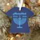 Símbolo Hanukkiah. Feliz Festa de Hanukkah Feriado Judeu Menorah Azul. Decoração de Feriado Judeu Chanukkah com o símbolo decorativo tradicional de Chanuka - Marinho Blue color hanukkiah menorah, candelabro com velas, estrela de David e ilustração azul neon brilhante. Festa de Chanucá das Luzes Decoração do Evento. Jerusalém, Israel. Home > Home Décor > Christmas Décor > Ornaments Modern Design com text modelo. Personalize-os adicionando nome ou texto de desejos. Design de dois lados.