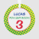 Padrão de pontos do História em quadrinhos em amarelo, verde, acento vermelho com FOTO personalizada na frente, NOME personalizado em azul, IDADE em vermelho na parte traseira, Zap! Pow! Em verde. Fácil de personalizar texto, cores de texto, fontes, adicionar foto. Excelente para qualquer super-herói Aniversário, Tema do Partido, Favorece em QUALQUER idade! Colorida, Divertida, Uma Guarda-Eterno. Misturar e combinar coleções completas de Histórias em quadrinhos/Partidas por TMCdesigns.
