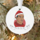 Enfeites de natal personalizado com ilustração de um homem afro-americano ou hispânico de cabelo preto curto e chapéu vermelho de Papai Noel; em círculo vermelho em fundo vermelho, com modelo de texto personalizável para seu nome ou mensagem