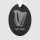 Ícone harpa preto e branco com decoração de nó celta. Texto Personalizado.
