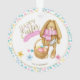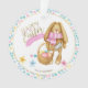 Este design de ornamento acrílico apresenta um adorável carregando de coelho de orelha esfarrapada, uma cesta de ovos de Páscoa e desejando a todos um 'Felz pascoa todo-o-mundo'. Pastos alegres em tons de rosa, azul e amarelo, borda de bolinhas e sotaques decorativos de flores somam esses toques finais a esse gráfico de Páscoa branca. Procure ID640 para ver outros produtos com este design.
