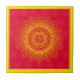 Belo design de ornamento de rendas redondas na Índia em quadro amarelo em fundo vermelho