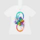 Multicor, brilho, símbolo de infinidade com arco-íris, monarca de borboleta detalhada. Borboleta-arco-íris. Arco-íris infinito.