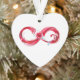 Símbolo infinito do fluxo contínuo de vinho tinto que entra em vidro de vidro sobre fundo branco.