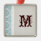 Cinza de Design de papel brilhante de imagem azul Damasco de imagem azul Monograma de textura Enfeites de natal inicial Personalizado
