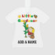 Uma menina loura pequena olha acima para ver a parte superior do milho desengaçar o crescimento em seu jardim neste design de jardinagem bonito e colorido em babadores, em panos do burp, em coberturas, em lembranças, em placas, em travesseiros, e em muitos outros artigos.