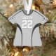 Edite a parte dianteira e o texto traseiro nnestes impressionante e de uns enfeites de natal amáveis do jérsei de futebol. Edite o número do jérsei de futebol. Recreie seu jérsei de equipes do futebol do favorito ou personalize seu próprio ornamento feito sob encomenda! Bola de futebol em cada luva. Edite a cor do fundo!