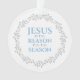 Traga o verdadeiro significado do Natal para sua árvore este ano! Este elegante ornamento azul e cinza tem uma simples borda de coroa com a cópia Jesus é a razão da estação no centro.