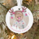 É a hora da temporada de se vestir para o Natal. Agora você pode vestir suas fotos especiais de feriado de sua família, crianças, ou seus animais de estimação com nossas galhadas gráficas de renas com sinos cor-de-rosa e tons vermelhos. Adicione sua foto ao quadro de fotos texturizado. Você pode mover-se facilmente em torno das sobreposições de gráficos de figurino, clicando em "Personalizar este Modelo" e, em seguida, clique em "Clique para personalizar mais" na parte inferior. Você pode mover as sobreposições gráficas ao redor para corresponder à sua foto. Quando estiver satisfeito com a colocação, clique em "Concluído" no canto superior direito e personalize com a assinatura da sua família e o ano. Pinheiros brancos decoram a foto. O verso apresenta um plano de fundo de padrão de bolinhas colorido simples e "Jingle All The Way" escrito em um divertido script de estilo manuscrito multicolorido. Enfeite divertido e memorável que está todo vestido para o Natal para compartilhar com seus amigos e família. Todas as ilustrações são obras de arte originais desenhadas à mão por Moodthology Papery. Navegue por toda a nossa coleção "Tudo Vestido para o Natal" - https://www.zazzle.com/collections/all_dressed_up_for_christmas-119599398178516059