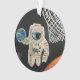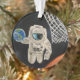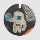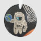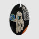 Pintura original de um astronauta jogando bola com a terra. Criado por meio de latas de plástico e tinta acrílica.