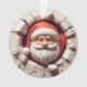 This delightful, double-sided ornament showcases a joyful 3D Santa. The front features him peeking from a cracked opening, radiating holiday cheer with his red hat and beard. The back complements, depicting Santa from behind in his iconic suit. This charming piece offers a full festive view from every angle, perfect for your holiday tree.