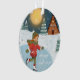 A charming winter landscape with a girl gracefully skating under the moonlight by a rustic cottage.