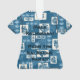 Mancha azul de Denim. Nas águas cristalinas da Baía de Kua, na Grande Ilha do Havaí, a vida submarina é abundante. A nossa camisa de aloha inspirada no impressão têxtil, apresenta conchas, corais e algas, como se vê em todos os olhos de uma máscara de snorkel. Este design é fornecido em várias cores e está disponível em uma coleção de produtos para decoração de casas.