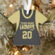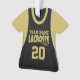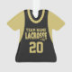 Jérsia desportiva de lacrosse negra e dourada com nome e número de equipe personalizados. Altere a cor da manga conforme preferido.