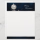 Uma elegante Ilustração de Natal: uma bola de Natal prateada e pérolas brancas sobre um fundo azul escuro de boque.