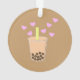 Chá de leite de bolha — chá de leite preto com boba tapioca de pérolas com corações cor-de-rosa.