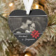Black and white heart shaped Christmas photo ornament with red ribbon decoration. Personalize with your own photo and text. Click customize to reposition or resize your photo if needed.