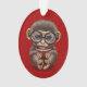 Ornamento Macaco bonito do bebê que lê um livro no vermelho