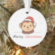 O macaco no Natal com um chapéu de Papai Noel. Animais engraçados com presentes e neve nas férias. Uma doce saudação de Natal. Os macacos são animais bonitos e perfeitos para o Natal.
