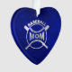 Este ornamento bonito de Feriado fará um maravilhoso presente de manutenção para qualquer "Mãe de Baseball"! Ele apresenta um logotipo especial da Mãe de Baseball prateado que inclui um baseball e dois morcegos cruzados no centro. A imagem é colocada sobre um fundo azul vívido. A parte de trás do ornamento tem um spray bonito de floco de neve prateado com seu texto personalizado abaixo dele.
