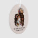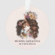 Belo ornamento de uma mãe e filha negras com flores vibrantes no cabelo, celebrando amor, família e herança. Um design que honra o vínculo entre mãe e filho. Ideal para o Dia das Mães, aniversários, ou como um presente significativo para mães, filhas e famílias que apreciam a união.
