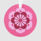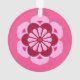 Adorno de acrílico com design de mandala japonesa que retrata uma flor de lótus estilizada, simbolizando pureza, despertar espiritual e fidelidade - flor em rosa suave, borgonha e rosa quente sobre um fundo rosa fúcsia