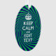 Sua personalização fica calma dizendo em uma vibrante decoração azul e verde. Um estilo "Manter Calmo" personalizado dizendo em um presente gentil. Humorístico ou caprichoso experimente suas palavras criativas em duas linhas editáveis de texto. Lembre-se de usar letras CAPITAL para obter melhores resultados. Designs estão disponíveis em uma ampla seleção de opções de cores populares. Use o link "Perguntar a este Designer" para entrar em contato conosco com suas solicitações especiais de design ou para obter assistência com seus projetos de personalização.