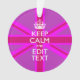 Seu personalizado "Fique Calmo" dizendo em uma vibrante decoração de união rosa-rosa. Um estilo "Manter Calmo" personalizado dizendo em um presente gentil. Humorístico ou caprichoso experimente suas palavras criativas em duas linhas editáveis de texto. Lembre-se de usar letras CAPITAL para obter melhores resultados. Designs estão disponíveis em uma ampla seleção de opções de cores populares. Use o link "Perguntar a este Designer" para entrar em contato conosco com suas solicitações especiais de design ou para obter assistência com suas necessidades de personalização.
