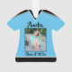 Uniforme de banda de marcha branca em azul e preto com foto colorida do cheio e texto editável. Mude a cor azul para combinar com a banda da escola e adicione uma foto favorita. O enfeite de manobras divertidas para a classe de qualquer ano é excelente para os membros da banda segundo grau e da marcha de faculdade e suas famílias com texto que pode ser editado para viagens especiais e competições. a foto pode ser removida para texto adicional durante a edição se nenhuma foto for preferida.