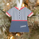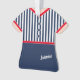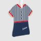 Camisa azul e branca listrada, e saia azul correspondente, cortada em vermelho... mostra o nome do seu amado. No verso está uma pequena "tatuagem" cardíaca de branco, com o texto "Natal 20xx" em vermelho correspondente. O nome e todo o texto são totalmente editáveis; e você também pode alterar o estilo da fonte e as cores do texto.