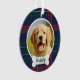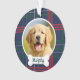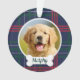 A decoração perfeita para os amantes do cão na sua família! Na moda e ornamento festivo de feriado apresentam uma foto favorita de seu cachorro com uma placa de osso de cachorro que pode ser personalizada com seu nome e um marinho azul clássico, verde-caçador e xadrez de tartã escocesa vermelha, padronizada. Dica: recorte sua foto em um formato quadrado antes de carregá-la no site.