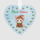 Ornamento com um gatinho fofo e uma mensagem diferente lembrando o Natal para decorar sua árvore de Natal. Forma cardíaca.