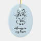 Adicione o nome do seu Hamster ao reverso do Keepsasasasaque Crie a manutenção de um amado amigo peludo. Este ornamento memorial de hamster mostra um desenho de tinta de um hamster sentado e tem o lema "Sempre no meu coração" (que pode ser mudado para plural se necessário). Você pode adicionar o nome do seu próprio hammy ao contrário. O ornamento é uma sombra azul macia.