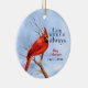 Este ornamento cardeal de Natal é uma bela maneira de honrar o seu amado. Uma maravilhosa manutenção para sua família ou amigos terem em memória daquela pessoa especial que é tão falhada. Verso é: eu sempre estarei com você. Personalize este ornamento com o nome e as datas.