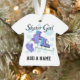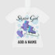 Nossos t-shirt do design da menina do patinador, as canecas, as bolsas, os cartões, os travesseiros, os pulsos de disparo de parede, as lembranças, os hoodies, e outros artigos de patinagem do tema caracterizam um par de skates do azul e da lavanda e mitenes em uma corda cercada por lotes de flocos de neve e do texto invernal que lê a menina do patinador!