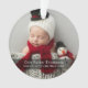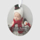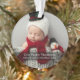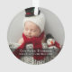 Este simples e elegante enfeite de natal com duas faces apresenta uma foto favorita do seu recém-nascido com uma sobreposição de faixa preta translúcida simples e texto moderno "Meu 1º Natal" que pode ser personalizado com o nome do bebê e o ano de nascimento. A cor preta neutra funciona tanto para um menino ou uma menina.