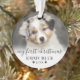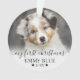 Ornamento de Natal Personalizado para Cachorro com Foto do Meu Primeiro Natal. Celebre o primeiro Natal do seu cachorro ou animal de estimação com este charmoso ornamento personalizado, projetado para capturar a alegria da primeira temporada de festas. A frente apresenta um espaço para uma foto do seu animal de estimação com a frase "Meu Primeiro Natal" em caligrafia elegante, juntamente com o nome do seu animal de estimação e o ano de nascimento para um toque especial e personalizado. No verso, um segundo espaço para foto é combinado com "Feliz Natal" na mesma caligrafia delicada, com o nome e ano do seu animal de estimação exibidos em tamanho menor na parte inferior. Acentuações de pegadas adicionam um toque adorável, enquanto um efeito ombre branco suave adorna a parte inferior de cada foto, criando uma transição suave e refinada. As cores da fonte e das pegadas podem ser personalizadas para se adequar ao seu estilo. Este ornamento é perfeito para celebrar o primeiro Natal do seu amigo peludo, adicionando calor