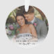 Ornamento fotográfico comemorando seu primeiro Natal como Sr. & Sra. personalizado com foto, sobrenome e o ano com um bonito ramo de condecoração. Primeiro ornamento de fotos de Natal personalizado com fotos de casamento. Primeiro Natal como um ornamento fotográfico casado com um bonito galho com um mistério preto e branco.