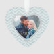 Sua própria foto é mostrada dentro de um quadro em forma de coração neste bonito Enfeites de natal de keepsasasasakr. O quadro é colocado sobre um fundo de padrão de cóevon azul-aqua gelado. A parte traseira do ornamento tem o mesmo plano de fundo e quadro, com seu texto personalizado em branco em um plano de fundo sólido correspondente. Brilhante, elegante e personalizado para você! *Observe que a imagem está impressa e não contém nenhuma falha real.